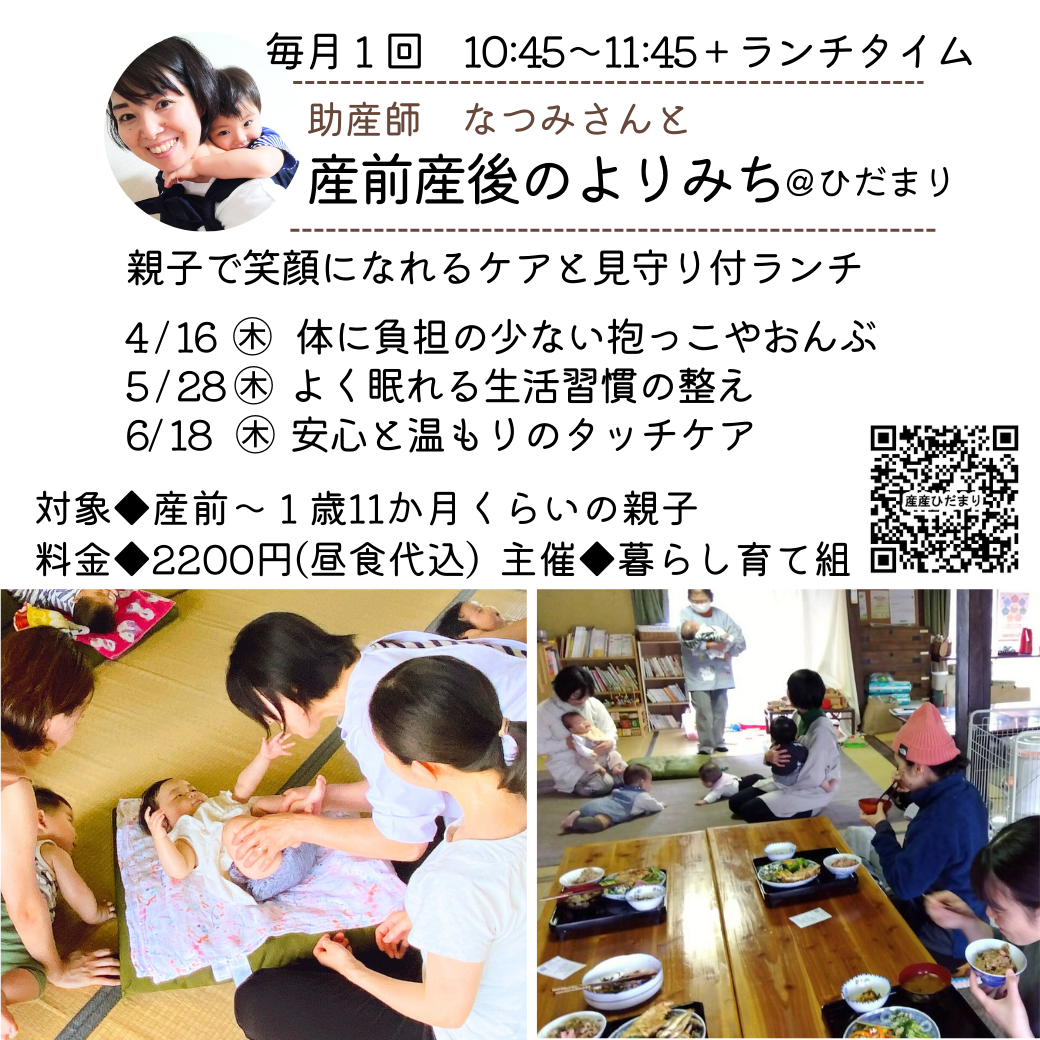 産前産後のよりみち@ひだまりは、講座とごはんのセット会です。